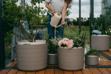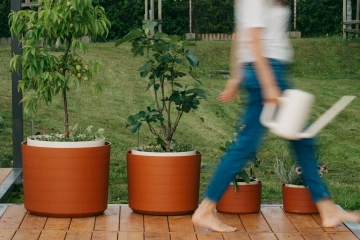 Self-watering planters maintain perfect moisture for a week or more. Double-wall design, overflow protection, and water level gauge included.