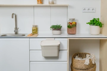 Keep your kitchen clean and your compost growing with this space-saving bio-waste container. Designed to hang inside your cabinet door, it captures food scraps effortlessly while the one-handed lid mechanism makes disposal quick and hygienic. No more trips to outdoor bins or messy countertop containers – just convenient, continuous composting that fits seamlessly into your daily cooking routine.
