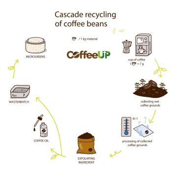 This product contains a dye derived from coffee grounds. Intelligent processing, so-called cascade recycling, also makes it into a dye for plastics, the so-called masterbatch. Thus, we utilize natural, circular colors.